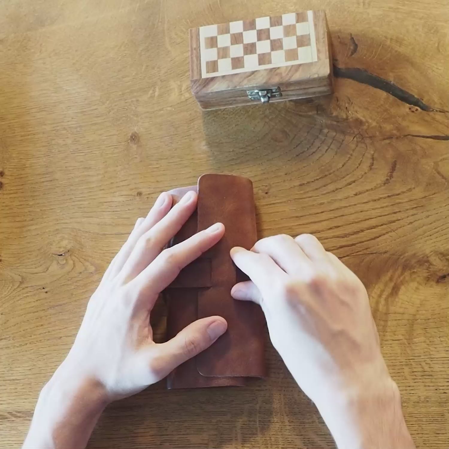 • Leather roll case for pens and more — also suitable for watches, straps, chargers, and cables. The adjustable strap keeps everything secure.