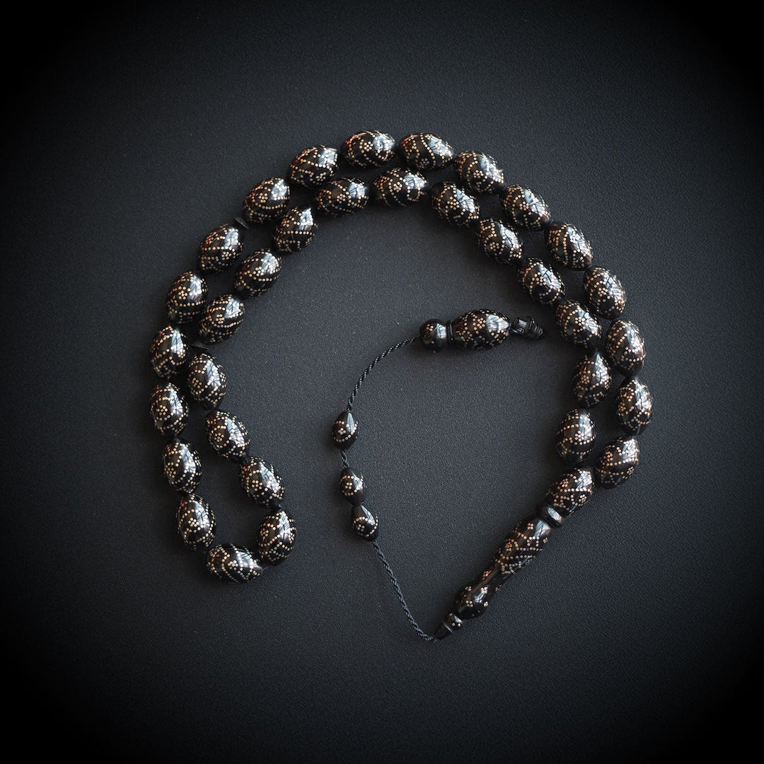 Special Cast Pressed Amber Tasbeeh - Gold Signature Hitame (Final Bead) – WATD008