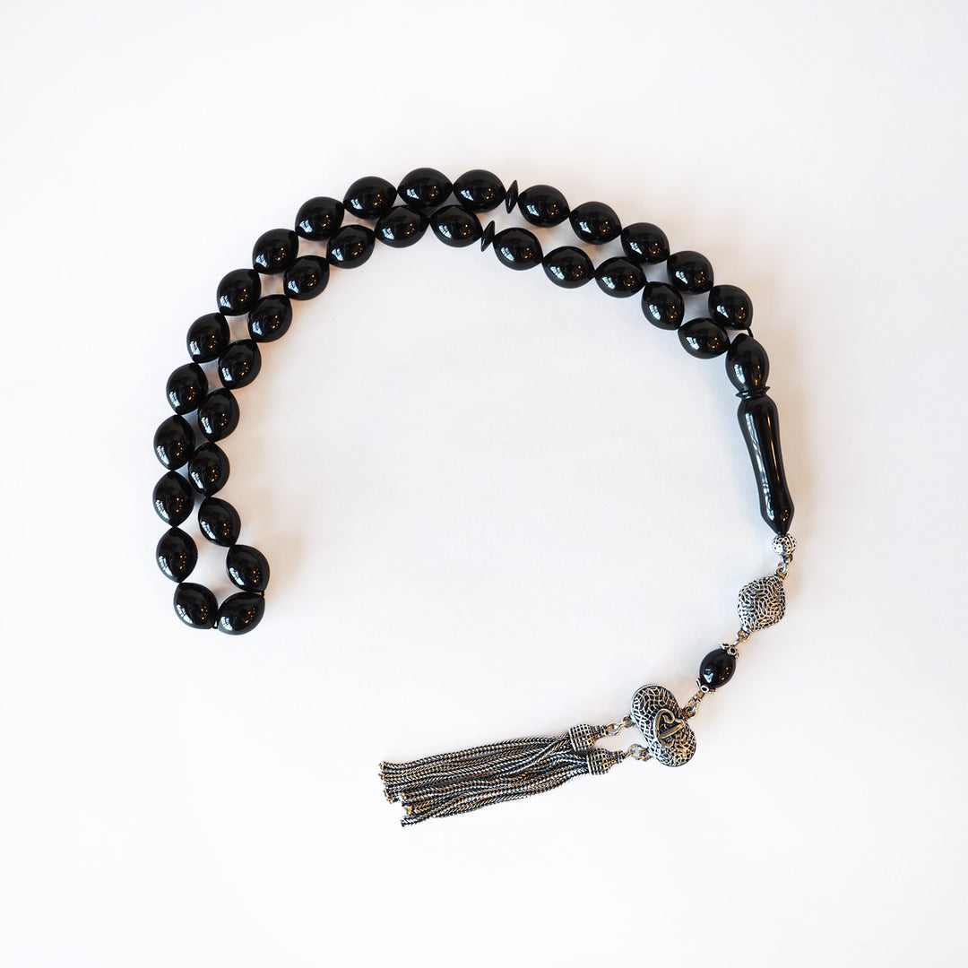 Genuine Oltu Stone 8-Cut Design with Sterling Silver Hand-Engraved Imam Bead & Special Tassel - WATD028