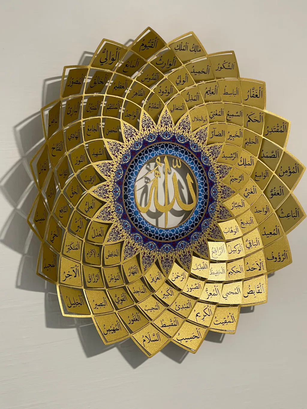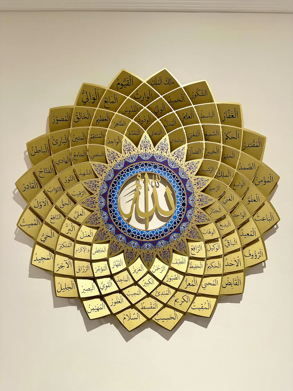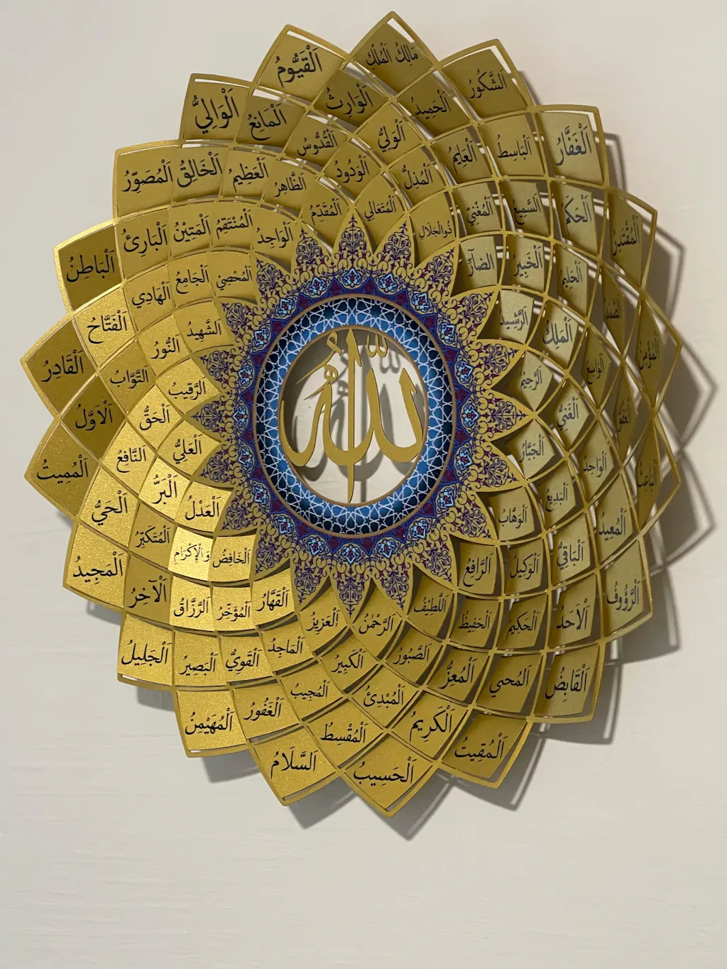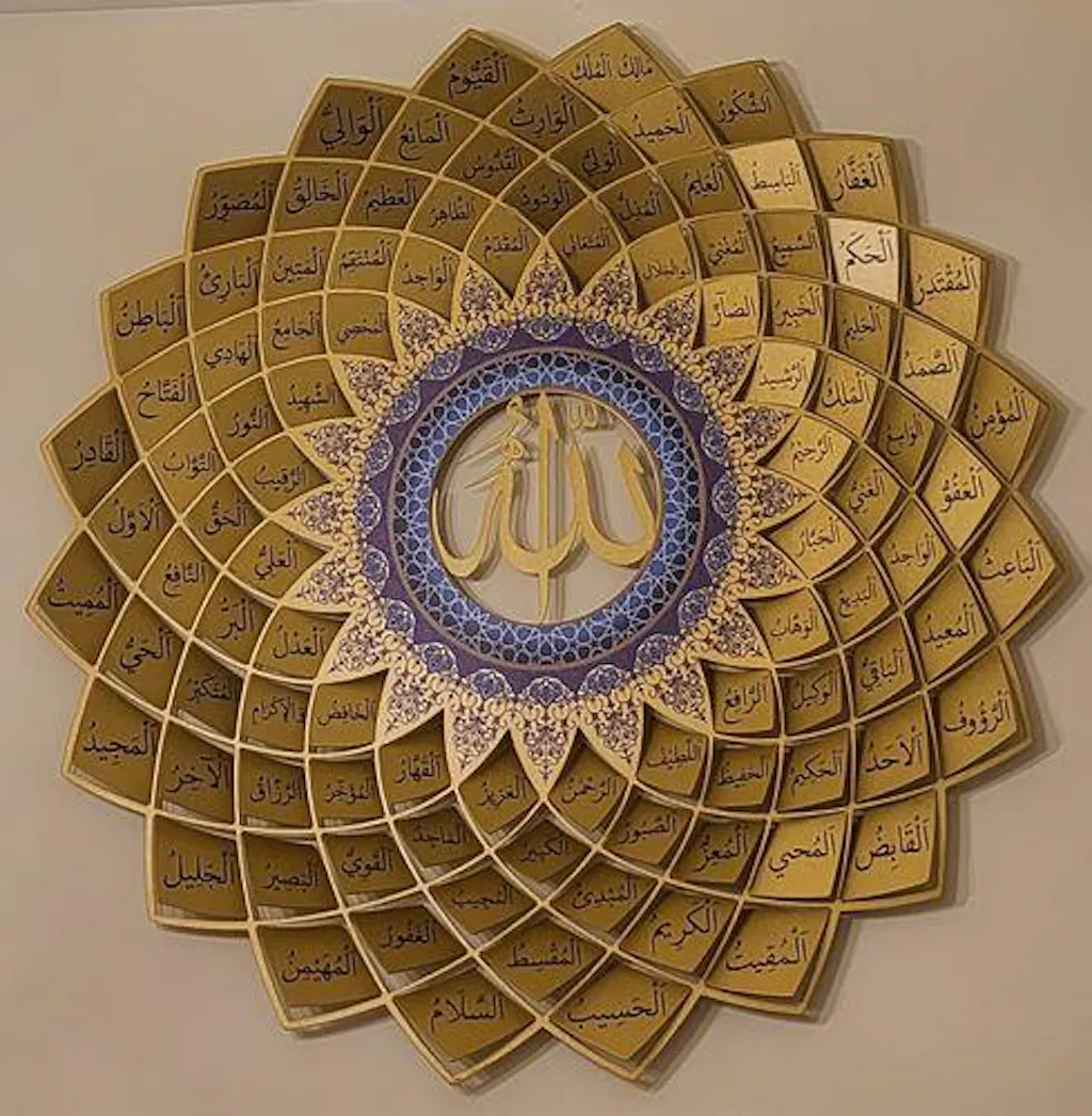 I couldn't be happier with the 99 Names of Allah metal wall art piece in gold. We got the 67x67cm piece. It's beautifully crafted and adds an elegant touch to our home. The attention to detail is remarkable, and it truly stands out. Delivery was prompt and efficient. Highly recommend this exquisite piece!