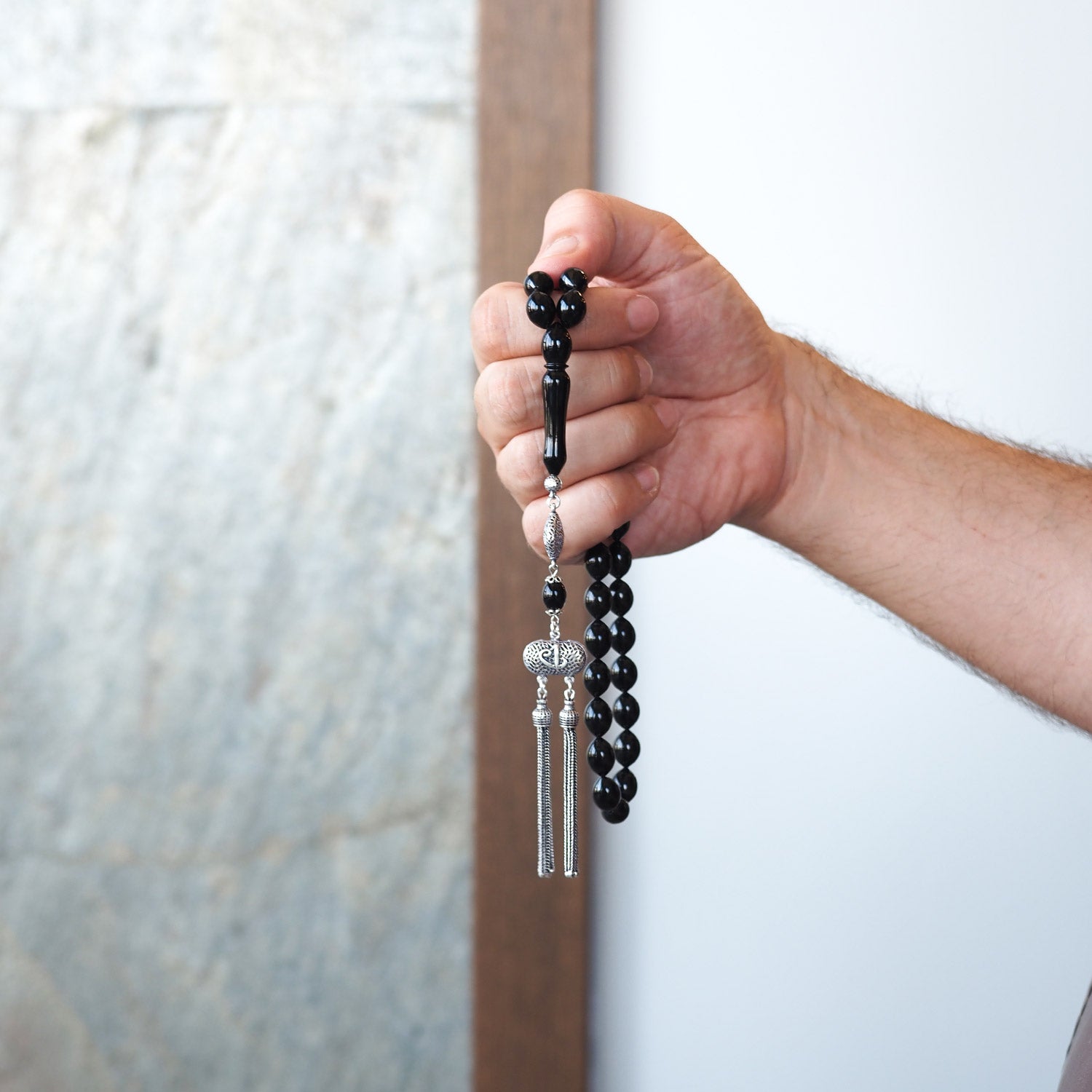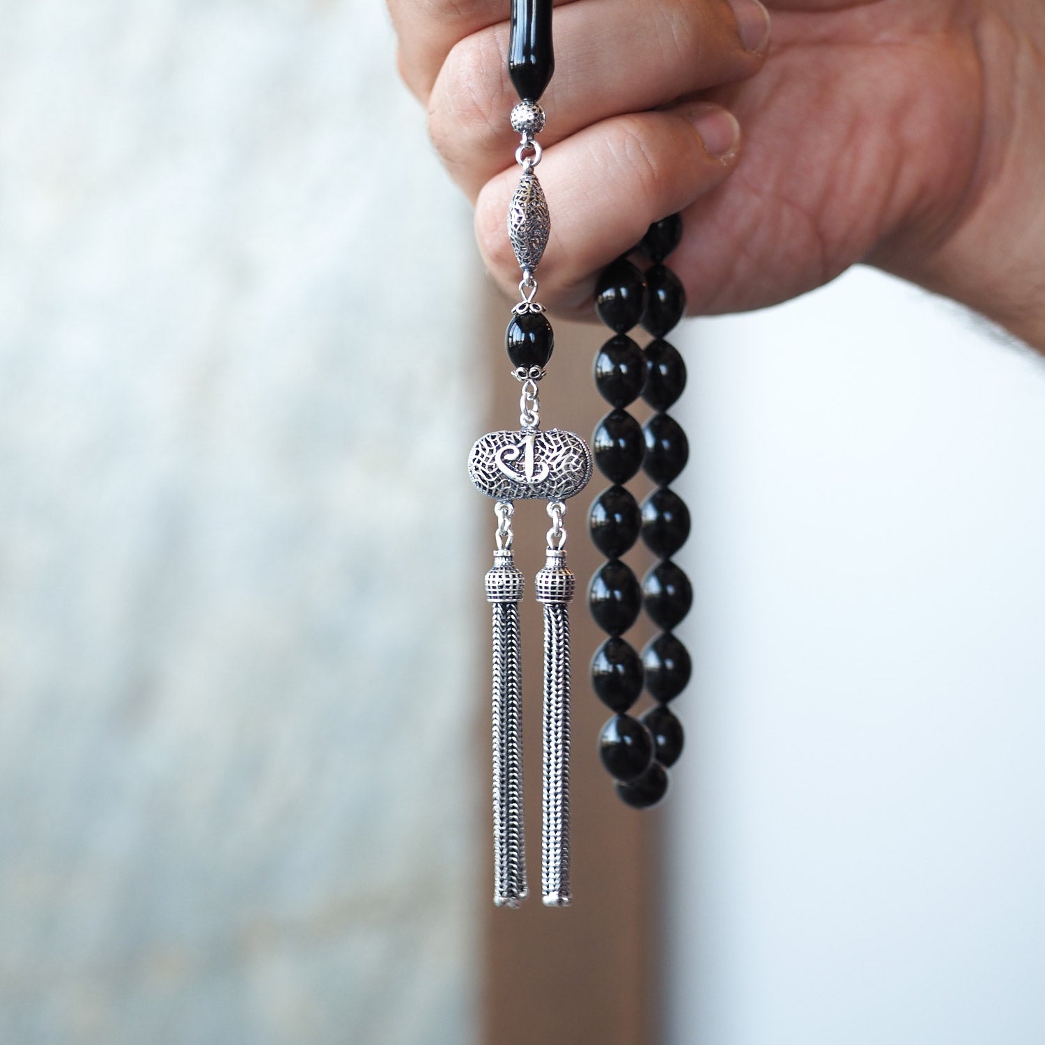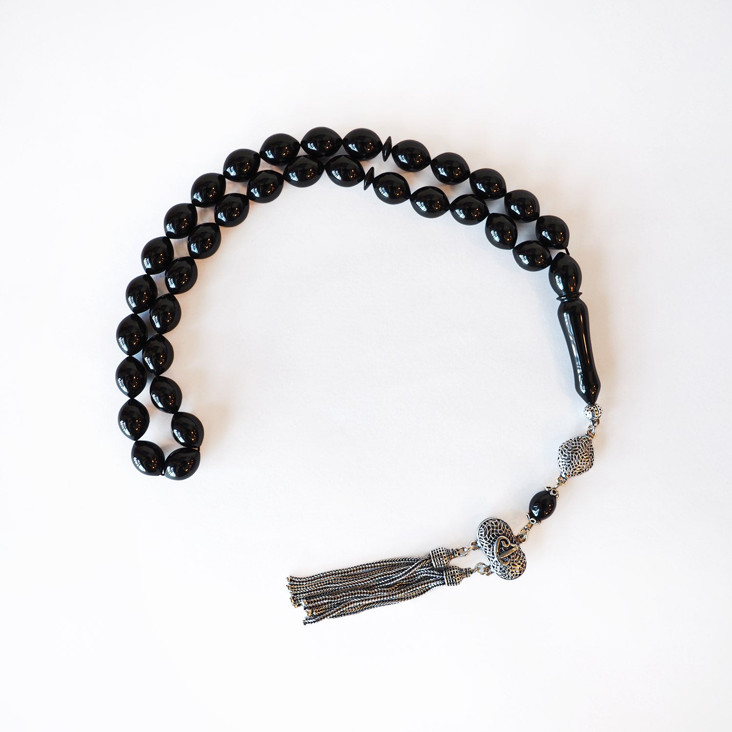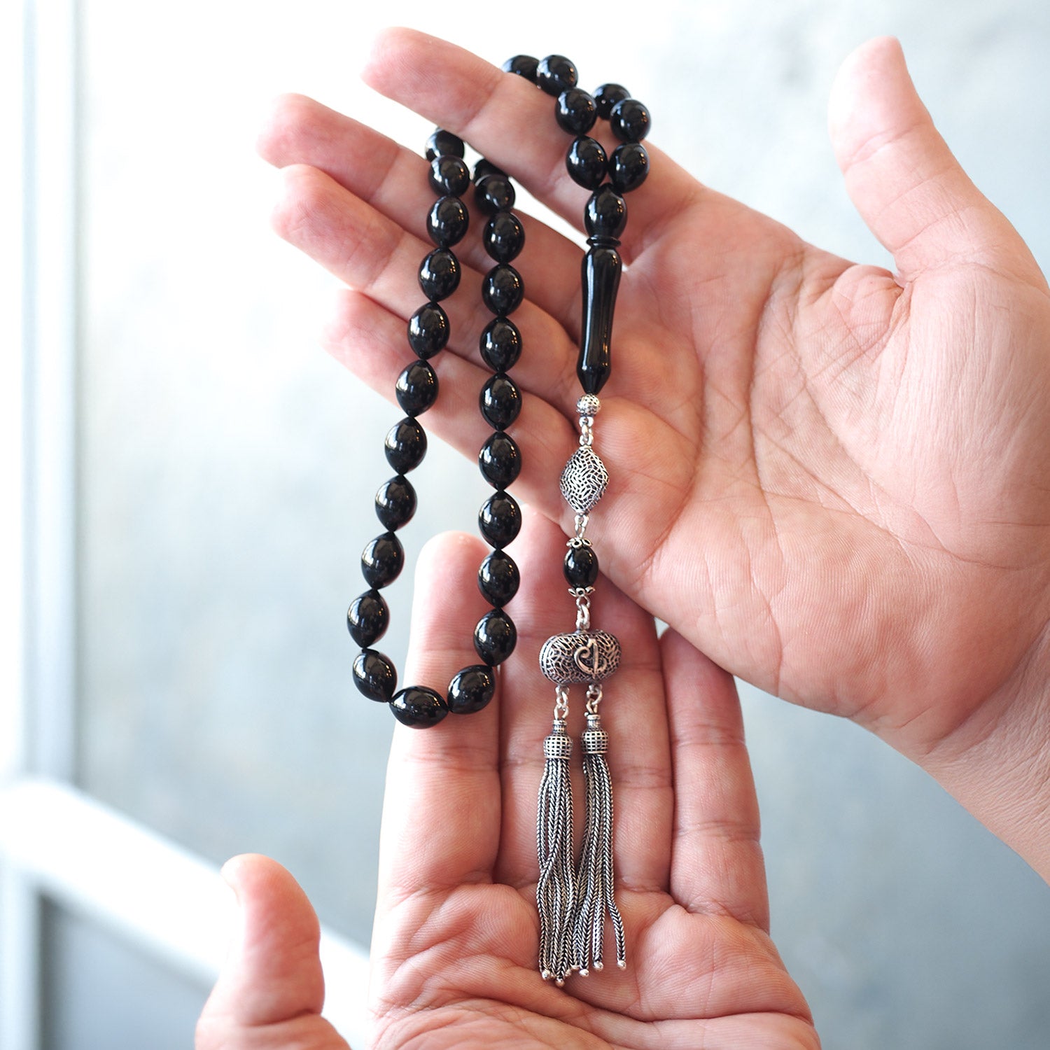 Crafted from genuine Erzurum Oltu stone and adorned with finely detailed silver accents, this limited-edition tasbeeh is a symbol of elegance and spirituality. Each bead is carefully handcrafted, offering a refined touch to your daily prayers while also standing out as a meaningful gift option.