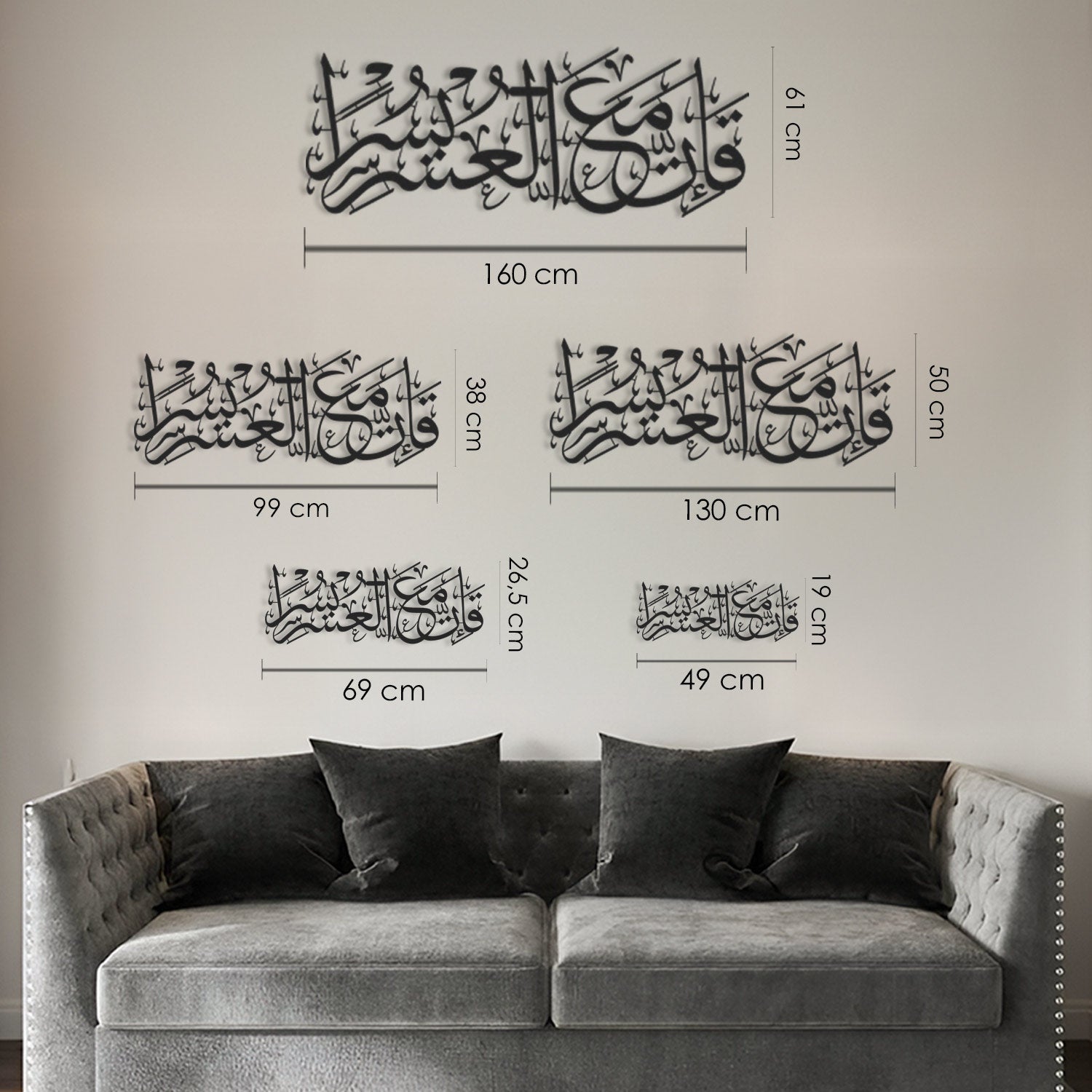 “Indeed, with hardship comes ease.” Surah Ash-Sharh, 94:6 Metal Islamic Wall Art - WAM235