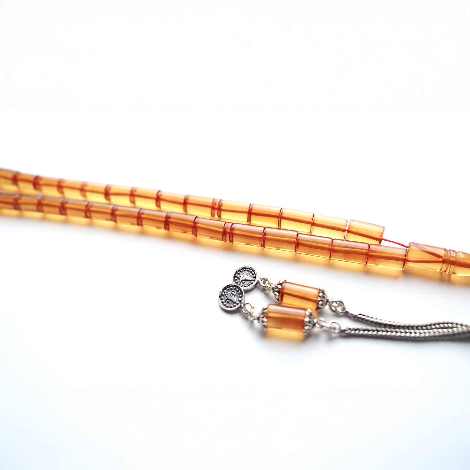 Pressed Fire Amber Silver Tasbeeh – WATD123