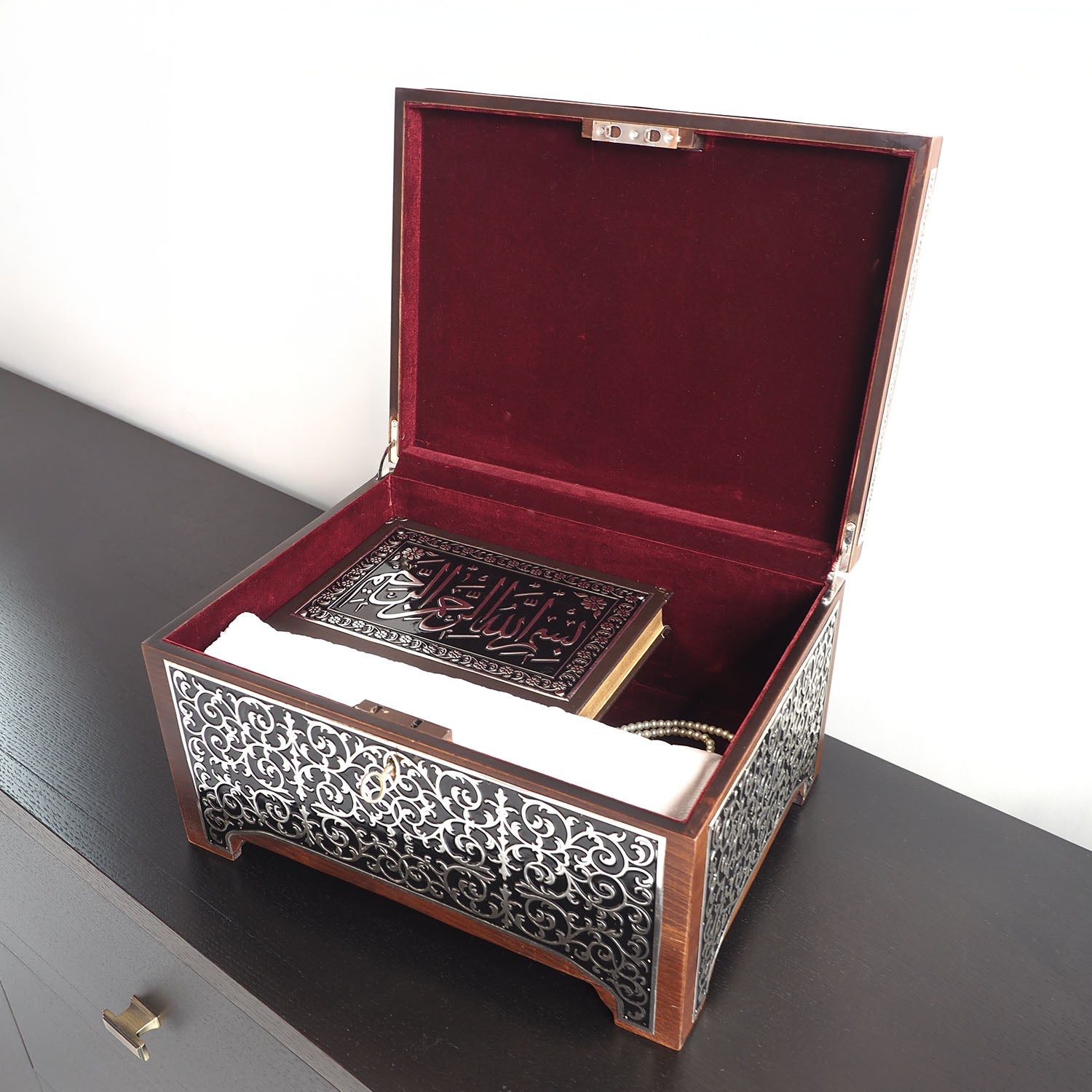 - This elegant handcrafted wooden chest combines the warmth of natural wood with the sophistication of silver inlay. Decorated with intricate traditional patterns, it represents timeless craftsmanship and refined taste. Perfect both as a decorative accent and for storing your cherished belongings — a true heirloom piece for generations to come.