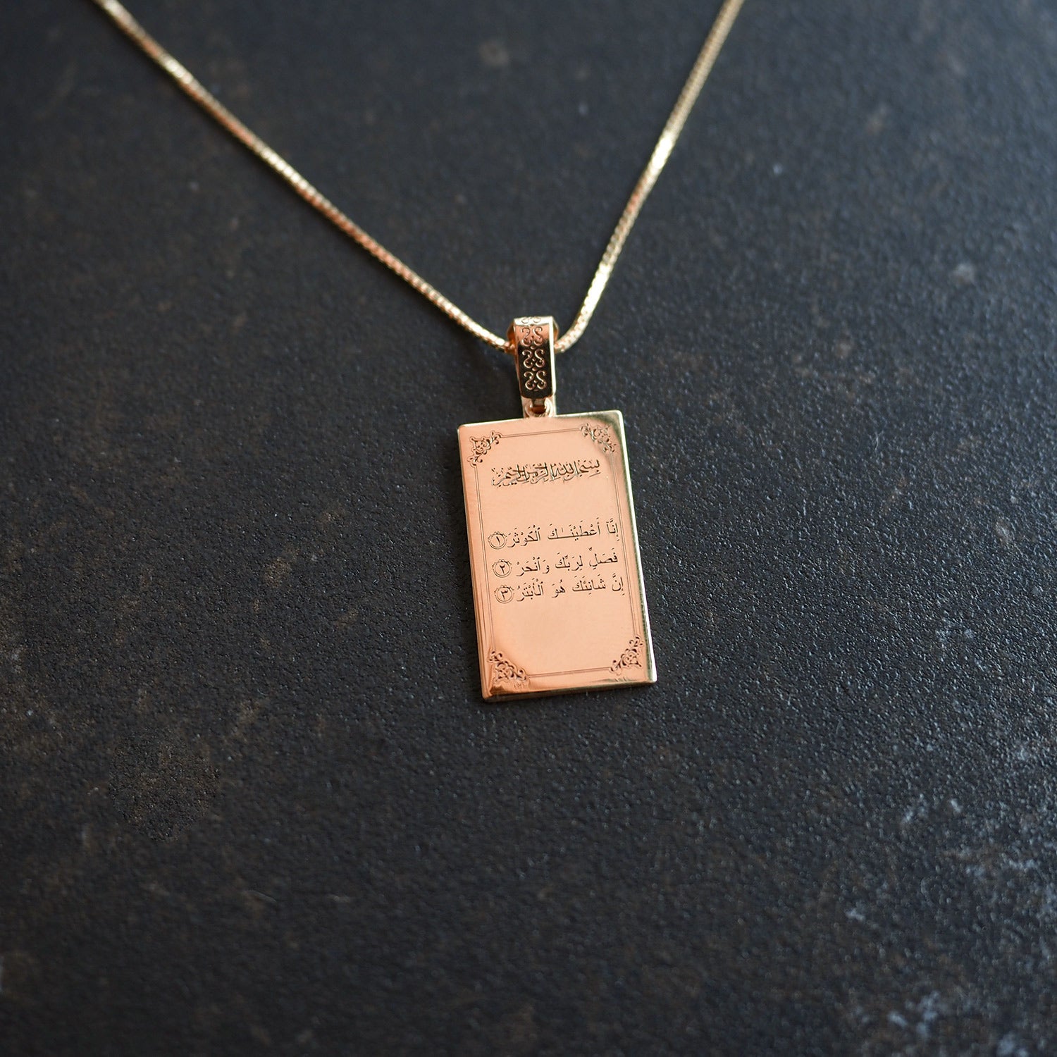 • The Surah Al-Kawthar Necklace carries the Arabic verse of divine abundance — a message of eternal gratitude and grace.